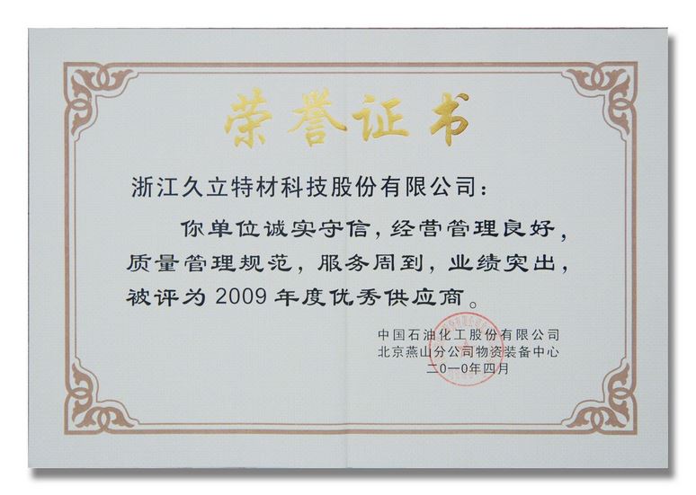 燕山石化优异供应商证书